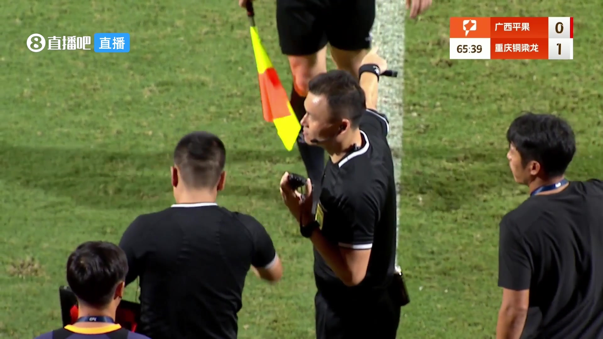 此时现场字幕给出VAR介入了这次判罚,可能要判给广西点球,有计划词现场事故握住。