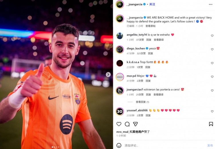 他也在赛后通过社媒晒出我方的庆祝照,并配文:“咱们回家而且获得了一场大捷!很兴盛再次捍卫球门!让咱们延续前进,巴萨球迷们!🔵🔴”