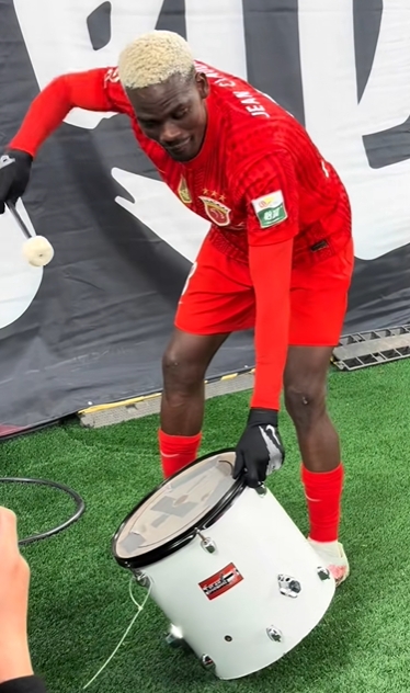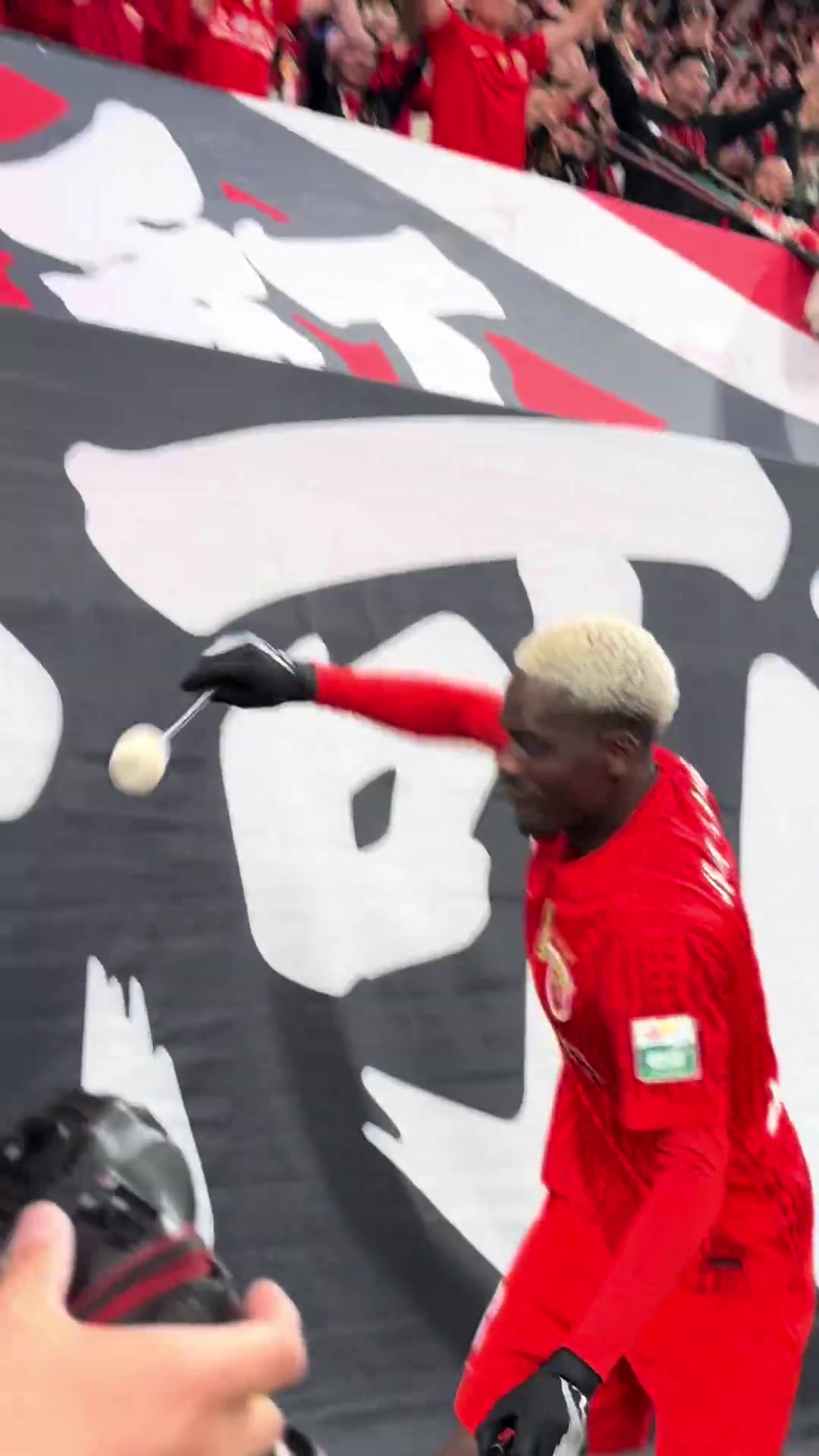 03月16日讯 中超第2轮,上海海港本场赛事4-1击败青岛西海岸,新援让·克劳德第47分钟首开记录,攻入职业生涯首球,赛后他擂鼓与足球球迷互动。
