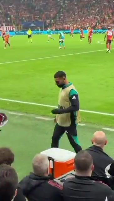 当利物浦控球时,现场55000加拉塔萨雷球迷爆发出强硬嘘声,萨拉赫被拍到被嘘声侵扰,致使捂住耳朵的画面。