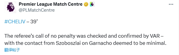 英超官方:“裁判不是点球的判罚过程了VAR的检查和阐发——索博斯洛伊与加纳乔的战役被以为是渺小的。”