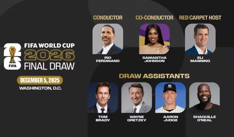 2026年寰球杯抽签典礼将于2025年12月5日在华盛顿特区约翰·F·肯尼迪扮演艺术中心举行。