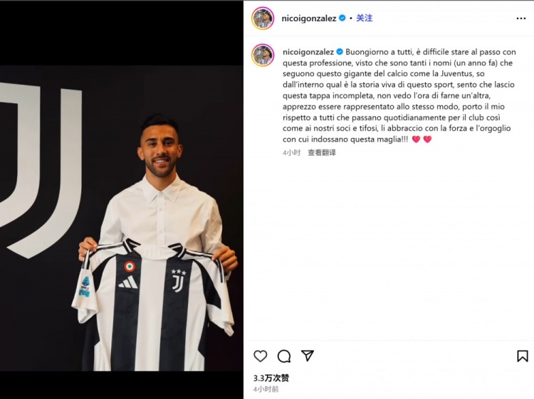 9月2日讯 尤文边锋冈萨雷斯还是官宣加盟马竞,他也通过社媒发文向斑马军团告别: