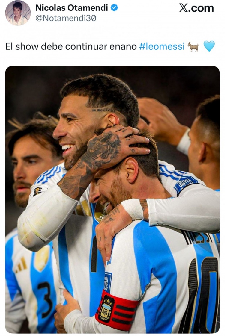 赛后奥塔门迪更新社媒,晒出了我方和梅西相拥庆祝的像片,并配文写谈:“让你精彩纷呈的献艺不竭吧,GOAT。”