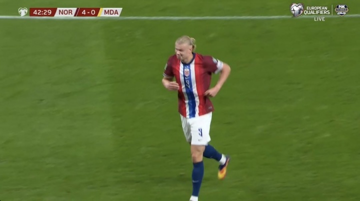 09月10日讯 世初赛挪威vs摩尔多瓦,哈兰德在第11分钟,第36分钟和第43分钟各入一球,此时挪威4-0普及摩尔多瓦!