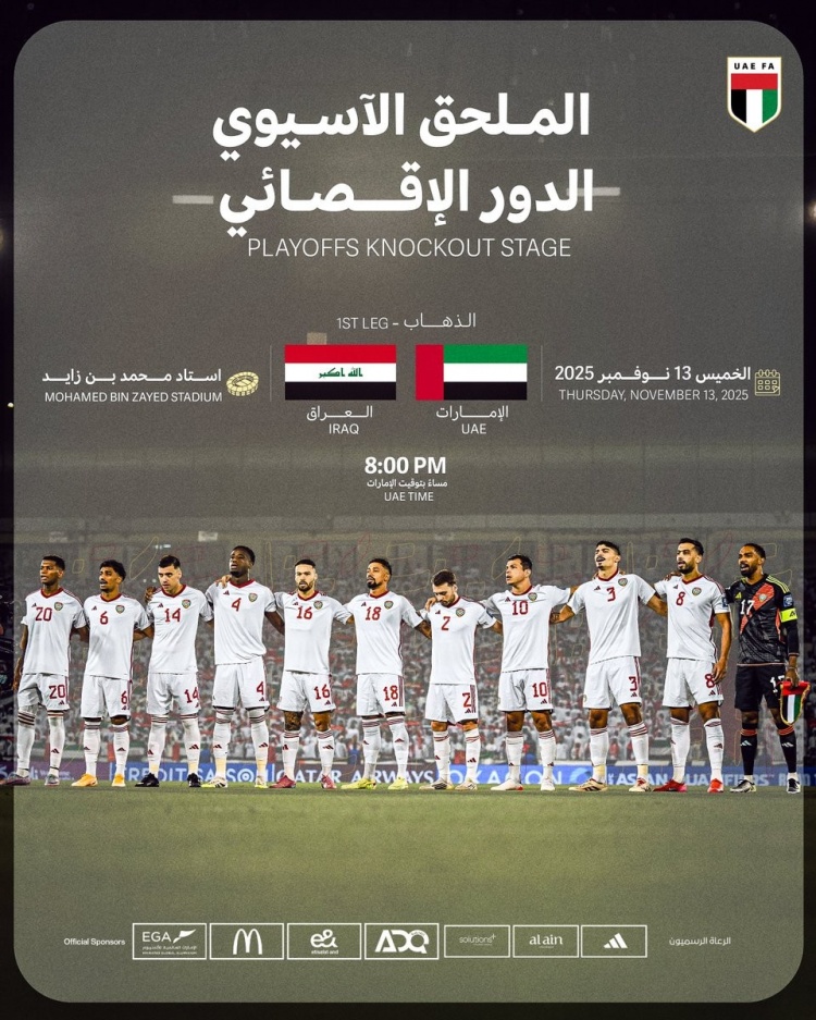 10月21日讯 官方音书,世初赛亚洲区附加赛首回合工夫笃定,阿联酋将在阿布扎比的穆罕默德-本-扎耶德怒放场迎战伊拉克。