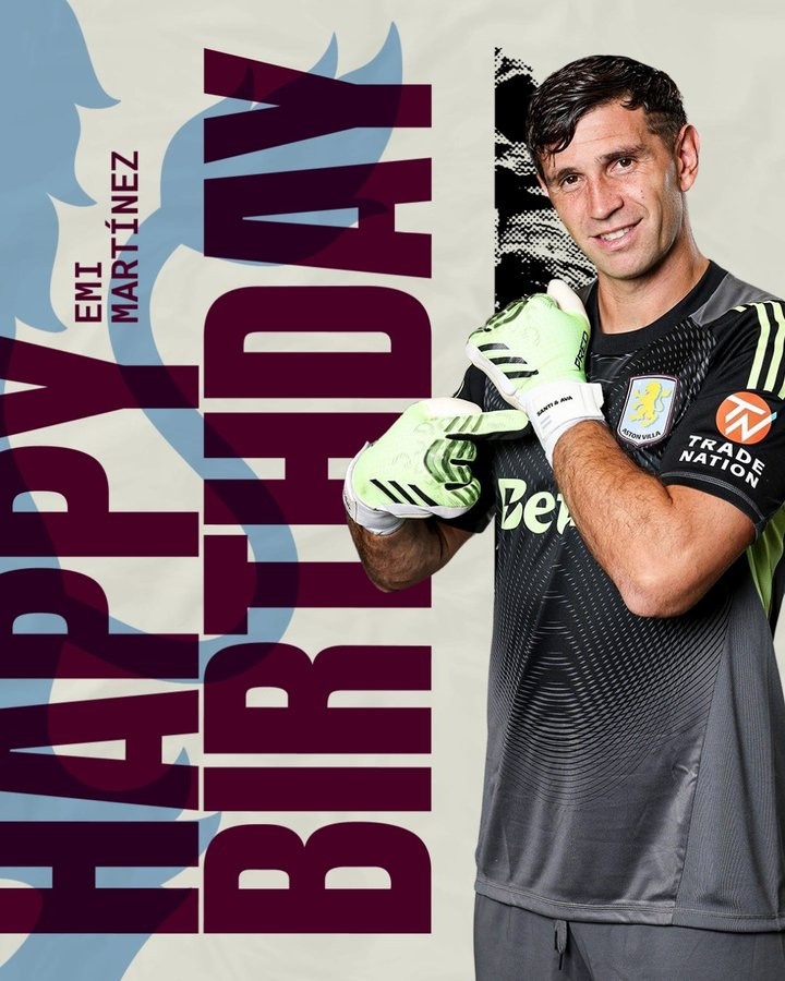 9月2日讯 今天是阿根廷国门马丁内斯的33岁寿辰,阿斯顿维拉官推发文为他奉上道贺。