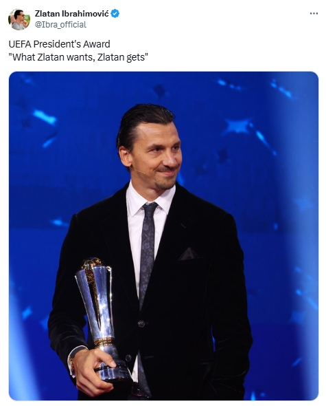 08月29日讯 在欧足联抽签典礼上,瑞典别传球星兹拉坦-伊布拉希莫维奇获颁欧足联主席奖,随后伊布在社媒发布获奖感言。