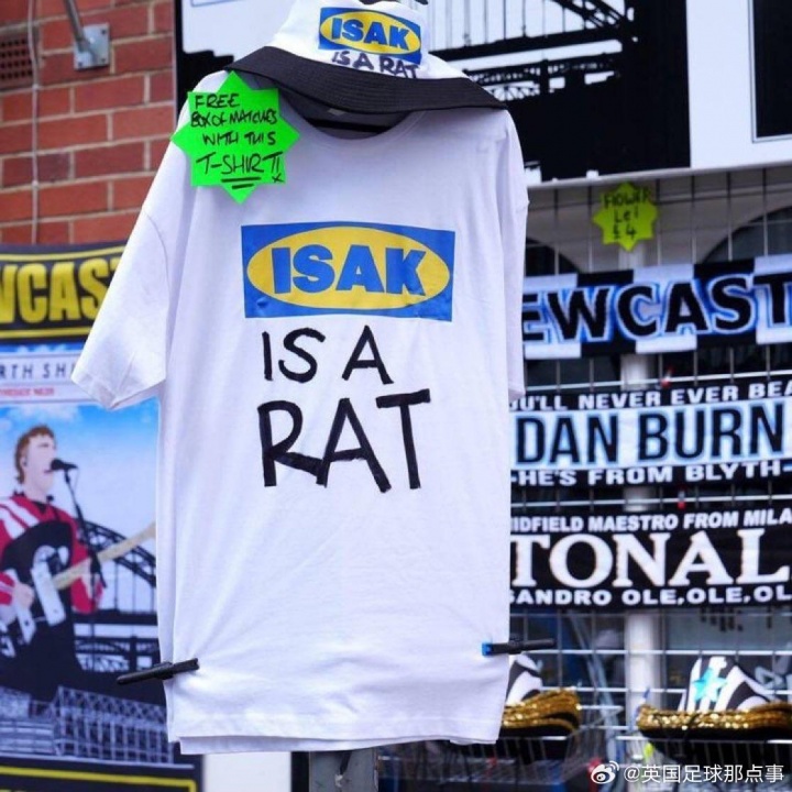 在利物浦对纽卡斯尔的比赛前,圣詹姆斯公园外有东谈主在出售写着“伊萨克是老鼠”的球衣👀