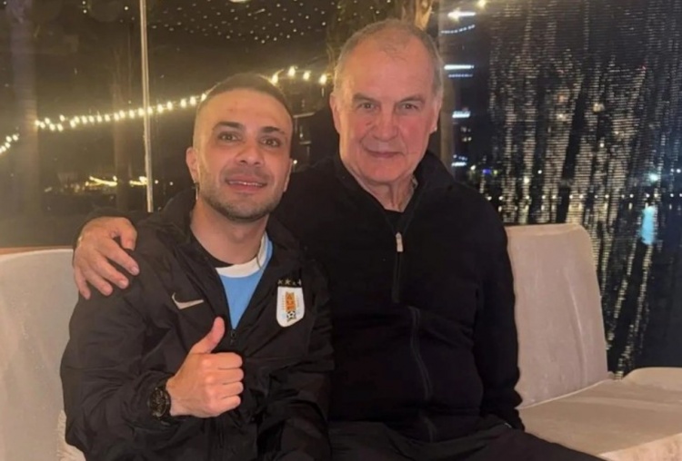 以3-0的比分征服秘鲁后,乌拉圭将会邻接第5次出当今寰宇杯赛场上。因此,球队与家东谈主、一又友和艺术家们一谈举行了一场高明的庆祝步履,致使连主考验贝尔萨也不肯错过。贝尔萨在现场追随球员们渡过了一个充满跳舞和歌声的夜晚。尽管贝尔萨在步履中并不是显得相配海涵,但他如故登上了主舞台向全队发表了谈话,祝福他们提前一轮晋级寰宇杯。