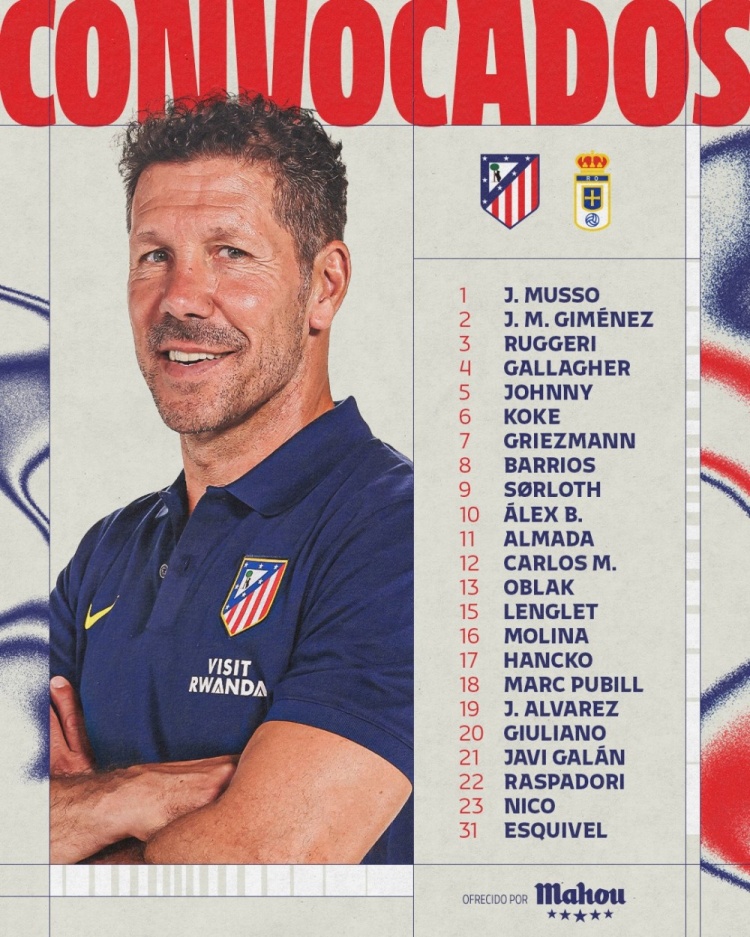 马竞本轮西甲大名单: