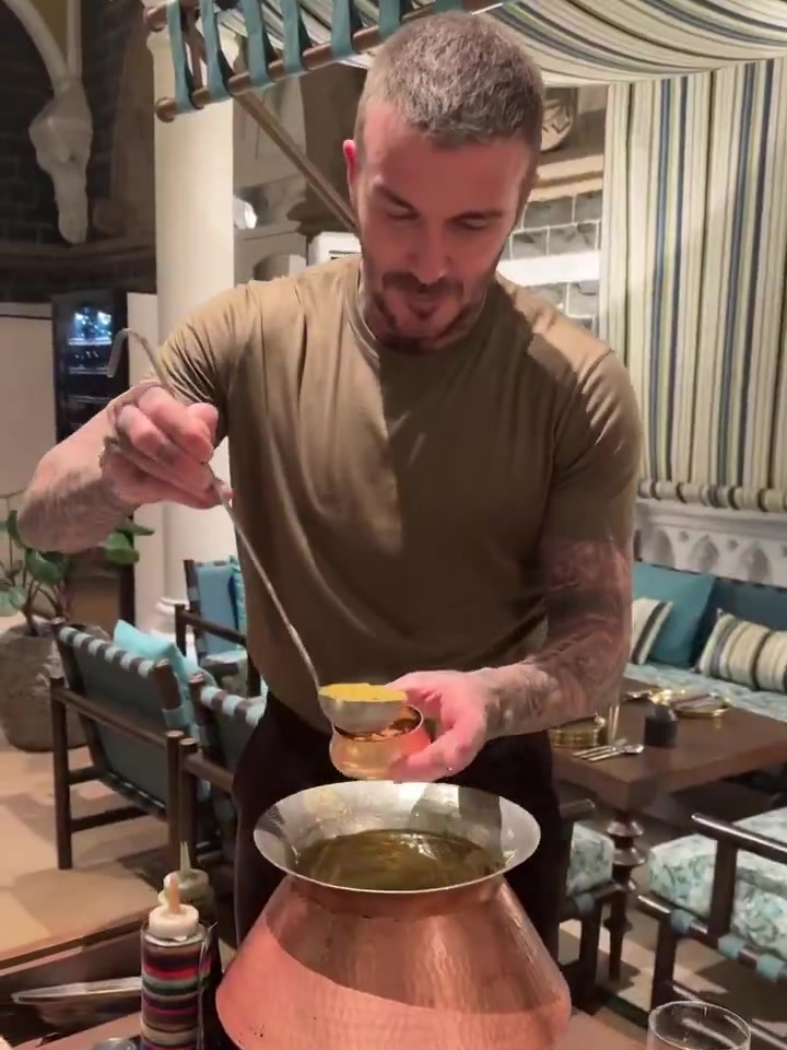 贝克汉姆在个东说念主应付媒体上晒出了一段视频,是他制作并回味印度好意思食Dal Ki Chaat的历程。