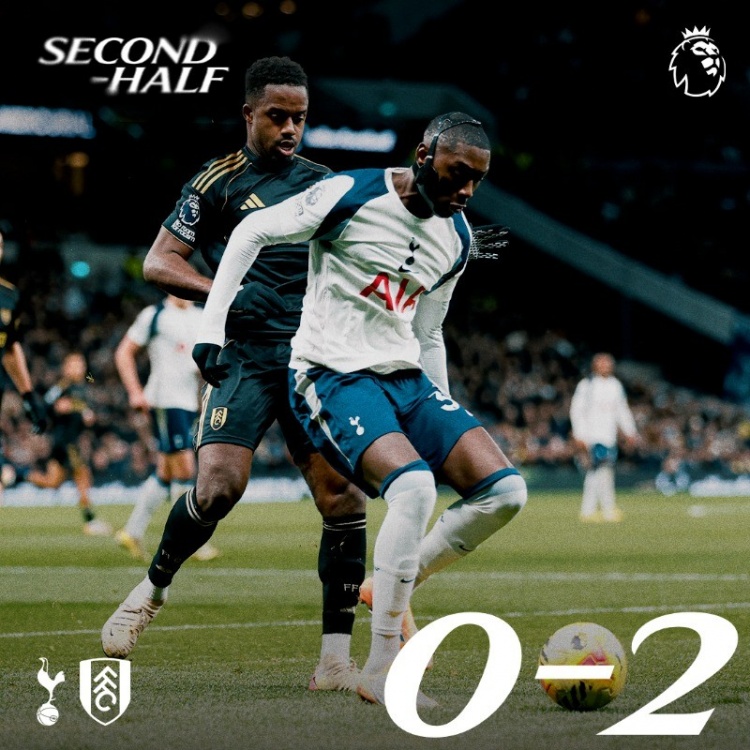 11月30日讯 热刺在本轮英超主场对阵富勒姆,上半场0-2过时于敌手。