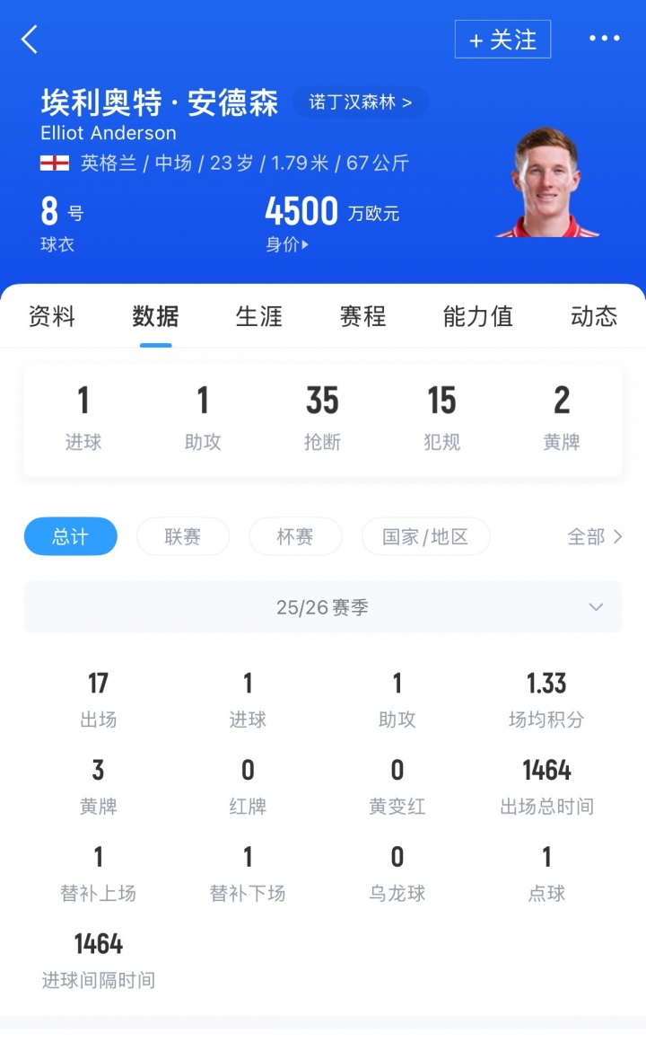 报谈称,埃利奥特·安德森蛊惑了曼城柔和,曼城总监维亚纳以及球探团队本赛季照旧不下十次检修球员。