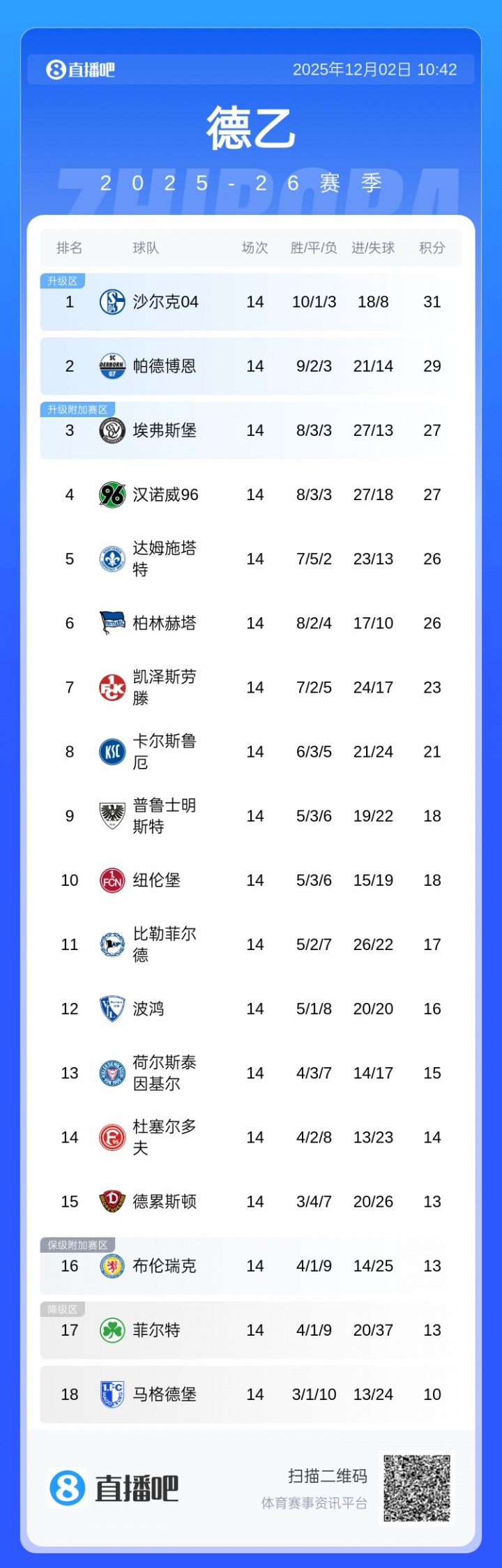 上赛季在德乙冬眠多年的“北大王”汉堡终于拿到德乙第二升级,本赛季回到德甲。一样是老牌劲旅的沙尔克04本赛季能否告成冲甲?