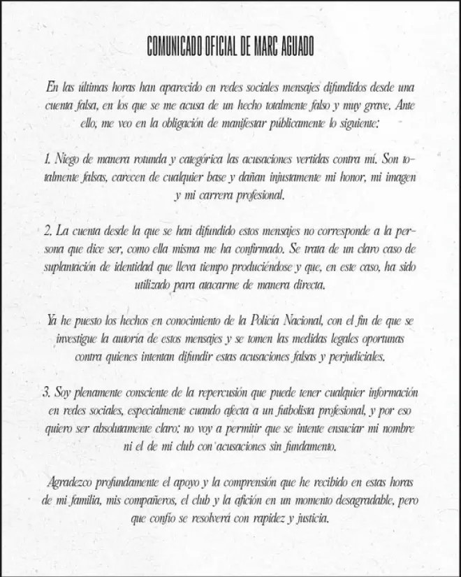 10月4日讯 埃尔切球员马克-阿瓜多近日发布官方声明,强项否定了酬酢媒体细密传的对于他苦恼和威逼别称女性的指控。