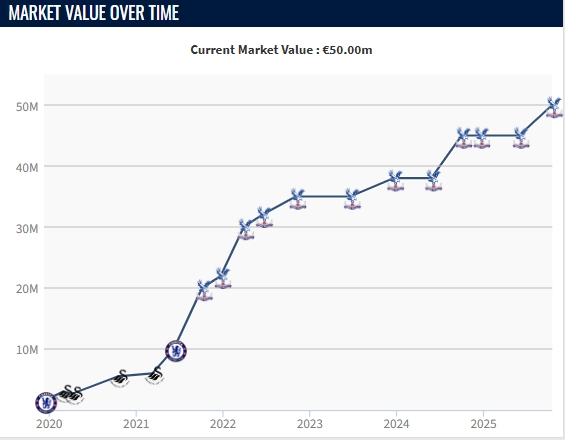10月17日讯 当天德转更新英超球员身价,25岁水晶宫中卫格伊身价涨至5000万欧,创活命新高。