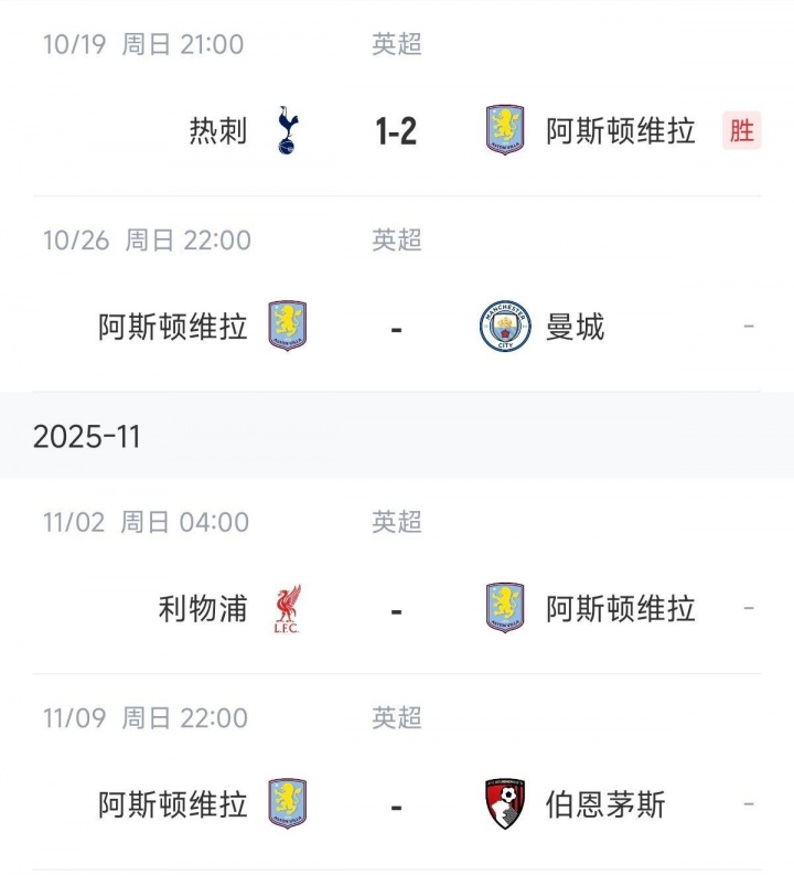 10月20日讯 英超第8轮,阿斯顿维拉客场2-1打败热刺,豪取各项赛事五连胜。