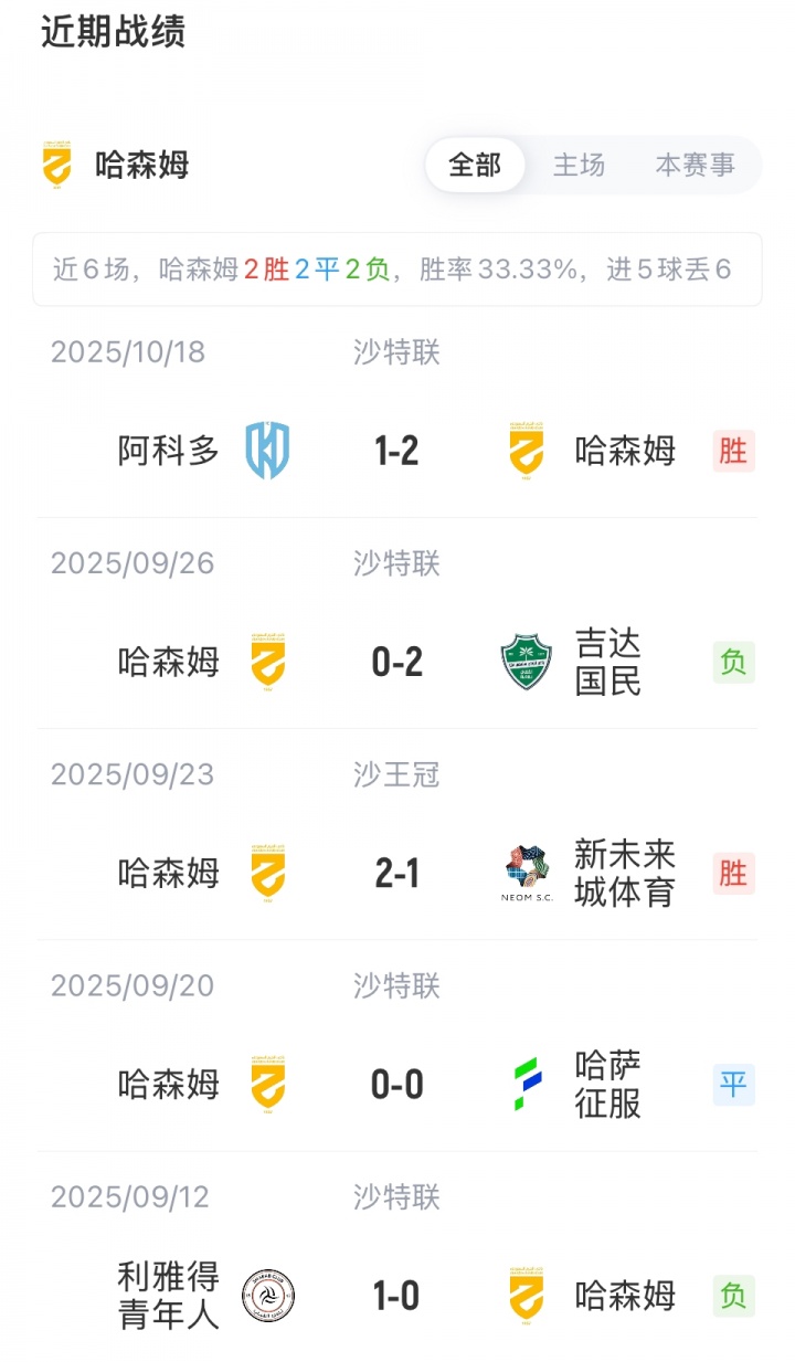 10月26日讯 沙特联第6轮,哈森姆主场迎战利雅得得手,赛前首发名单公布。